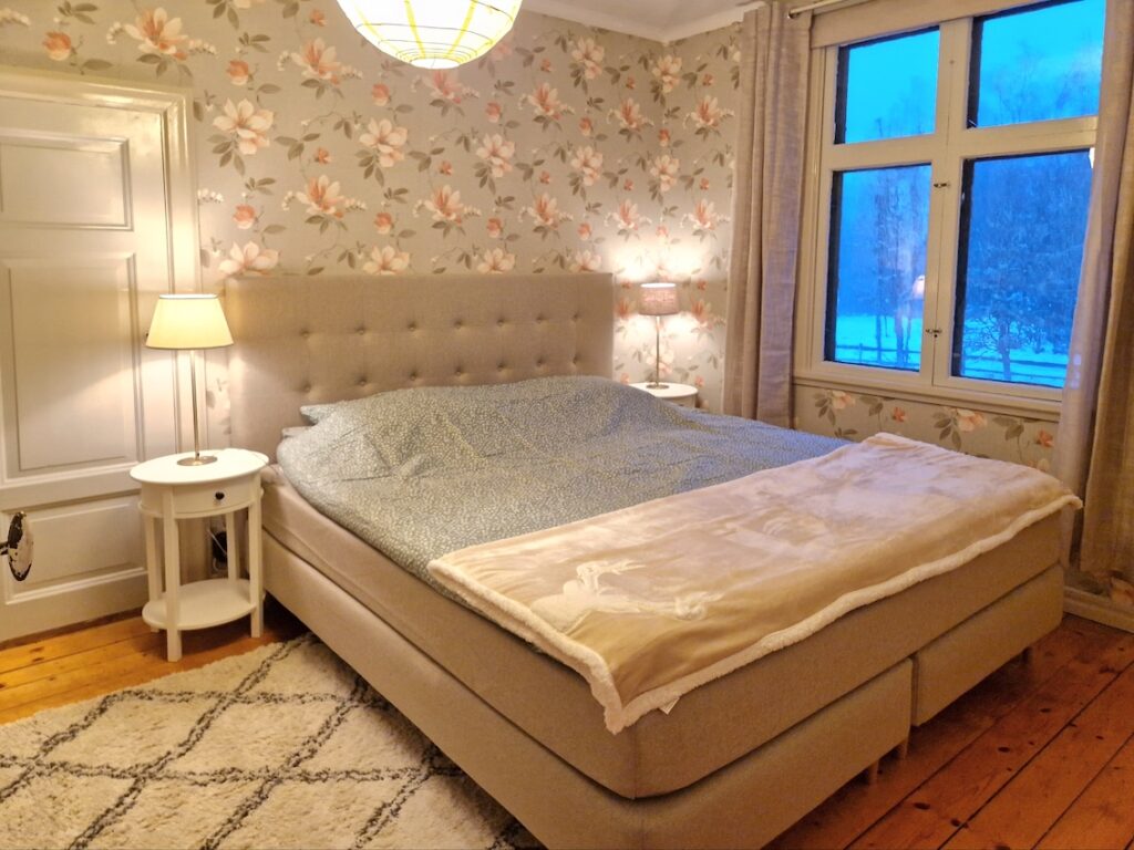 2. En 2 plans bostadshus röd med vita knutar genuint svensk hus med 3 sovrum, två vardagsrum, stor kök, dusch/ toalett och stor privat trädgård intill skogen.
